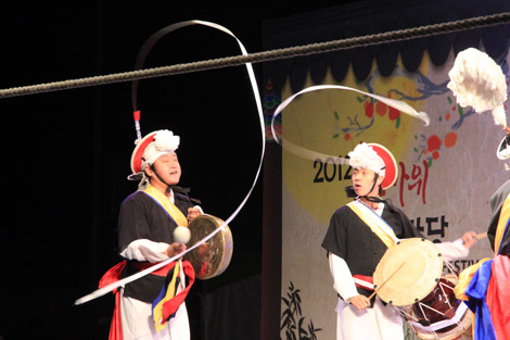 La rivière retrouvéeLe point de départ de la rivière, une cascade, est d’ailleurs un endroit rêvé pour faire venir les foules, et c’est ici que nous verrons un spectacle à l’occasion d’un début de festival, spectacle où des jeunes et des moins jeunes se succédaient pour nous offrir une composition des arts Coréens dans leurs atours les plus séduisants, alternant l’ancien, le moderne, ou les deux! On aura particulièrement apprécié le show de danse des jeunes hommes « hip-hop » associé à la troupe de demoiselles mêlant danses, costumes et tambours traditionnels, ainsi qu’une très impressionnante démonstration de Tae Kwon Do, l’art martial local.